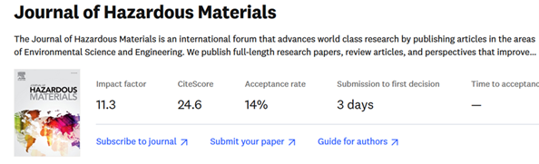 Jak podkreślają edytorzy Journal of Hazardous Materials (Elsevier): „The Journal of Hazardous Materials is an international forum that advances world class research by publishing articles in the areas of Environmental Science and Engineering”.