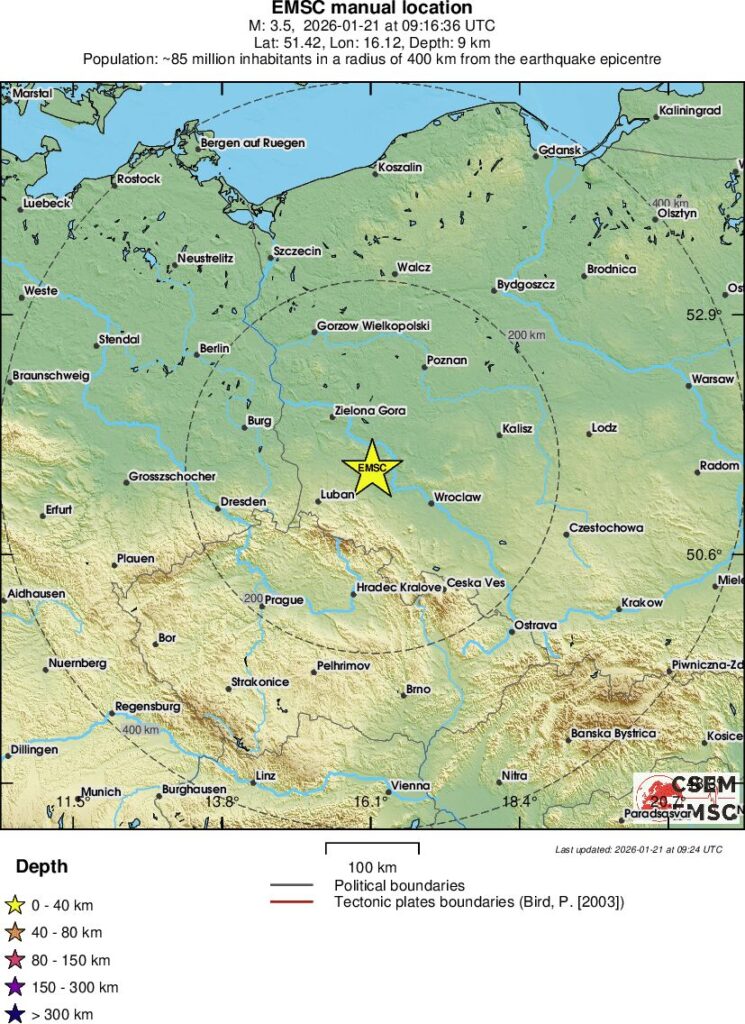 Wstrząs z dnia 21 stycznia 2026 o godzinie 09:16 czasu UTC (godz. 10:16 czasu lokalnego)